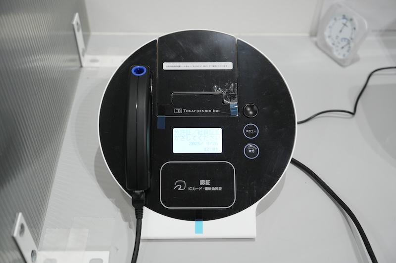 乗務前、乗務後、1日2回のアルコールチェックを行なっています。